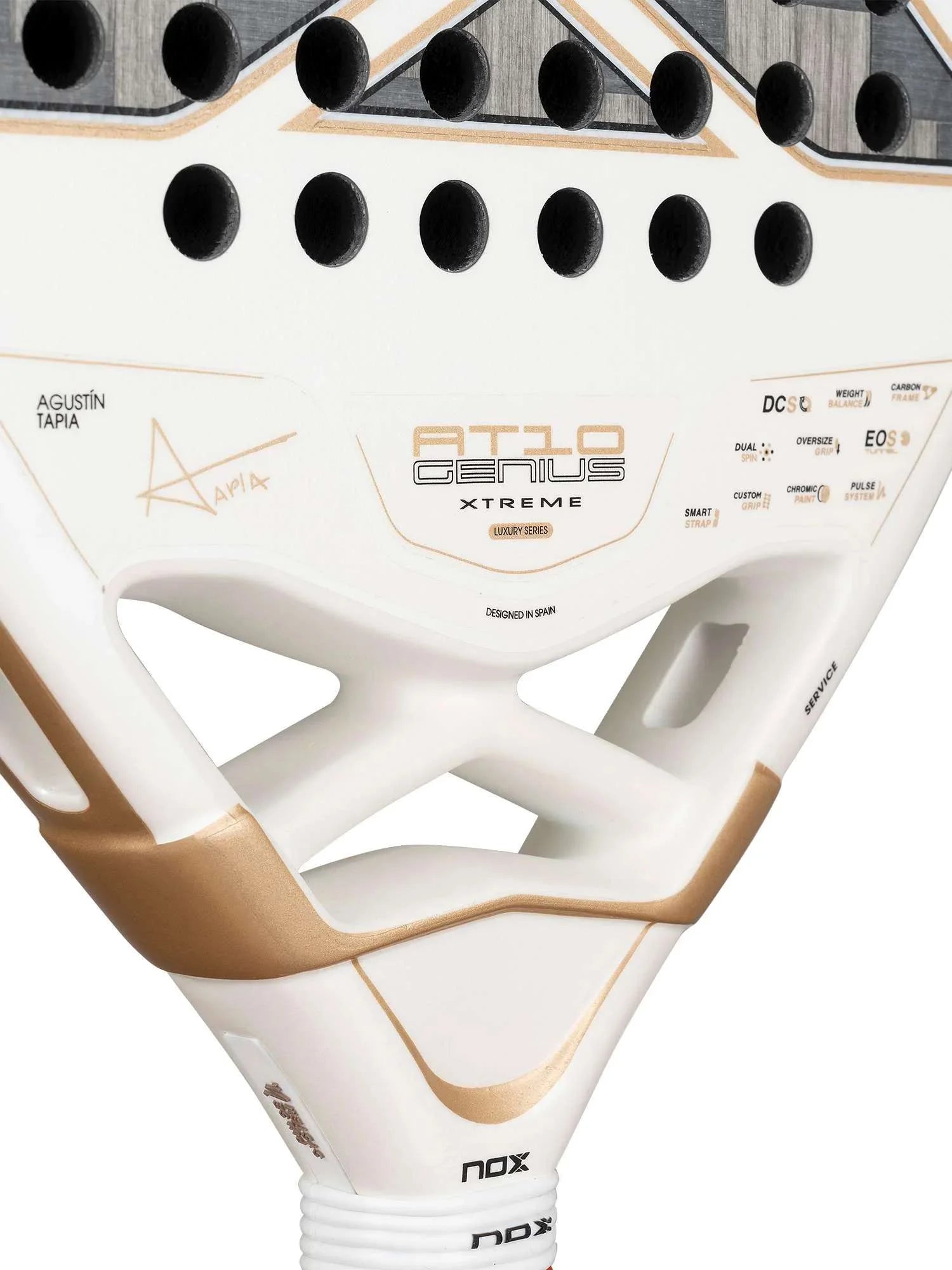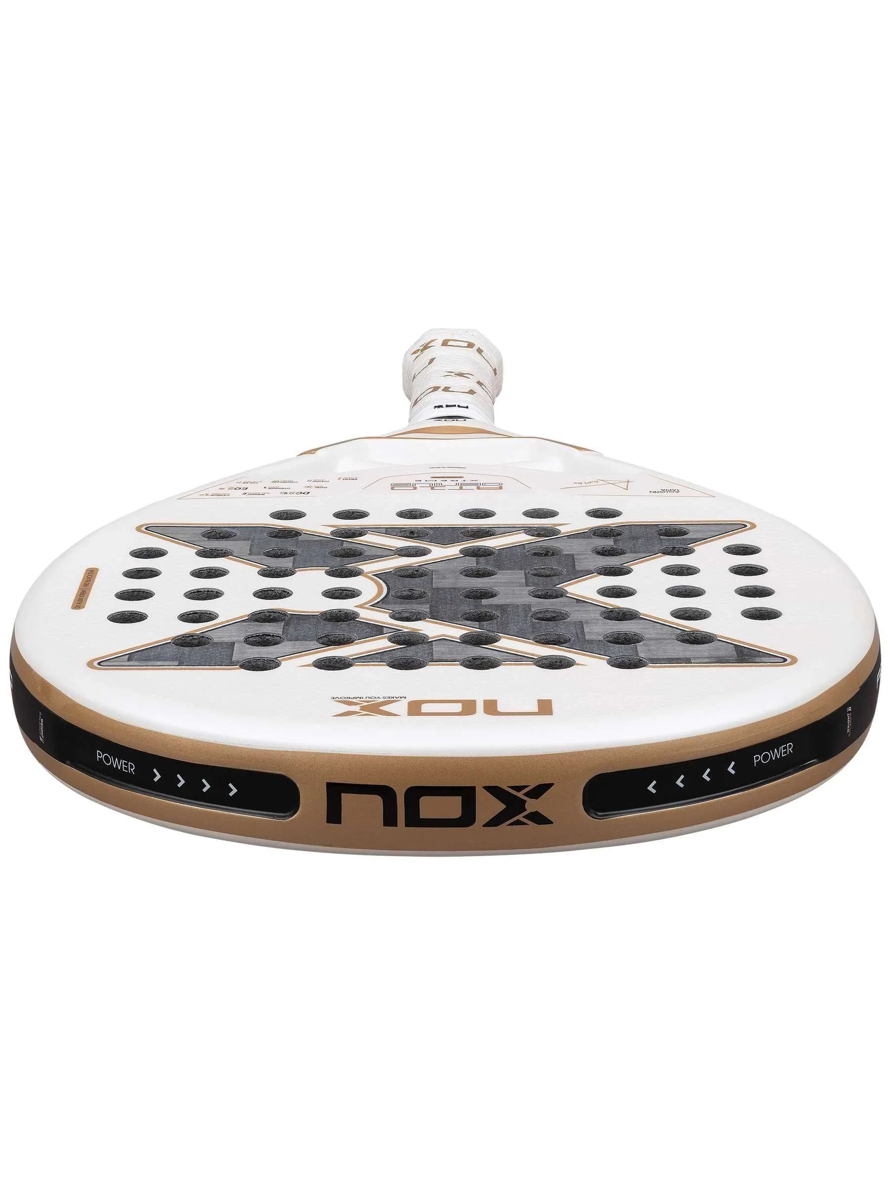 • PRINDERE PERSONALIZATĂ: Întreaga gamă Luxury încorporează tehnologia patentată NOX Custom Grip®, certificată de Testea Padel pentru a crește aderența și a reduce vibrațiile.