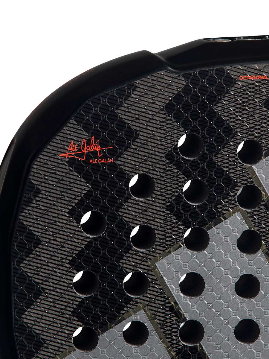 Modelul adidas Metalbone 2026 combină toate caracteristicile tehnologice și structurale pentru a excela la cel mai înalt nivel de performanță. Este unul dintre cele două modele adidas din 2026 pentru Ale Galán. Metalbone face o declarație îndrăzneață anul acesta cu trei tehnologii noi pentru un joc de atac complet: mânerul extins Power Extra Grip , care oferă o inerție mai mare a balansării; designul poliedric Low Poly al cadrului și miezului, care sporește puterea; și șina Power Groove de pe cadru, care crește rigiditatea structurală. Acest trio puternic de tehnologii este îmbunătățit și mai mult de... Sistem de greutate și echilibru , permițându-vă să ajustați echilibrul și greutatea rachetei pentru o putere mai mare sau un control îmbunătățit. Compoziția sa din fibre de carbon aluminizate 16K și cauciucul EVA Soft Performance asigură rigiditate și un rezultat excelent al mingii. În cele din urmă, autocolantul Spin Blade duce spinul la nivelul următor.